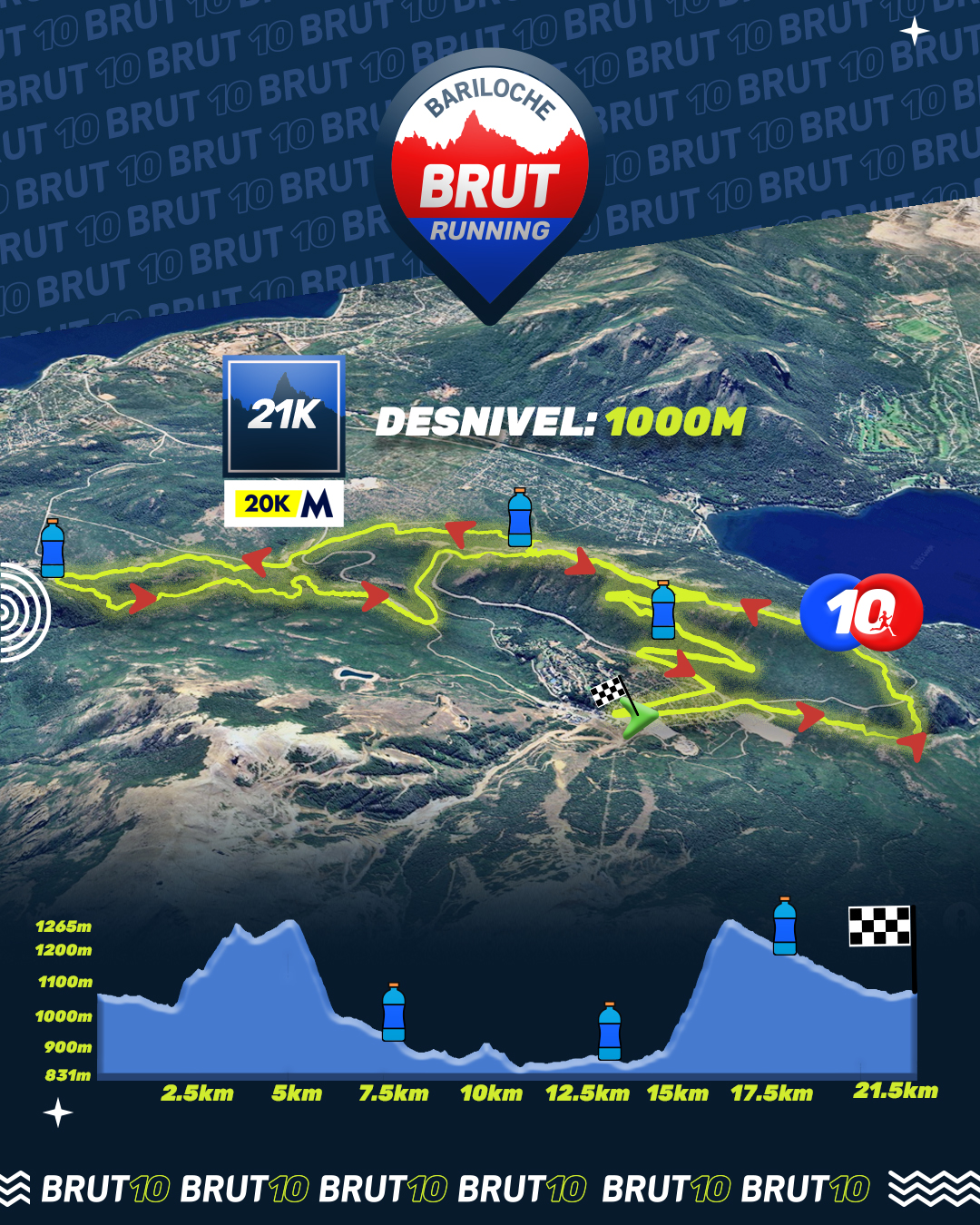 Los 21k saldrán desde la base del cerro Catedral hacia en Cerro San Martin, realizarán un ascenso por una de las caras y un descenso por otra de sus caras. Al final de esta bajada se encontrarán con el primer puesto de hidratación. Seguirán por sendas hasta el Arroyo Casa de Piedra donde estará el segundo puesto de hidratación. Luego retomarán subiendo el Cerro San Martin por otra de sus caras hasta encontrar el tercer y último puesto de hidratación. Un descenso final a la base del Cerro Catedral por zetas muy rápidas y divertidas y la llegada!