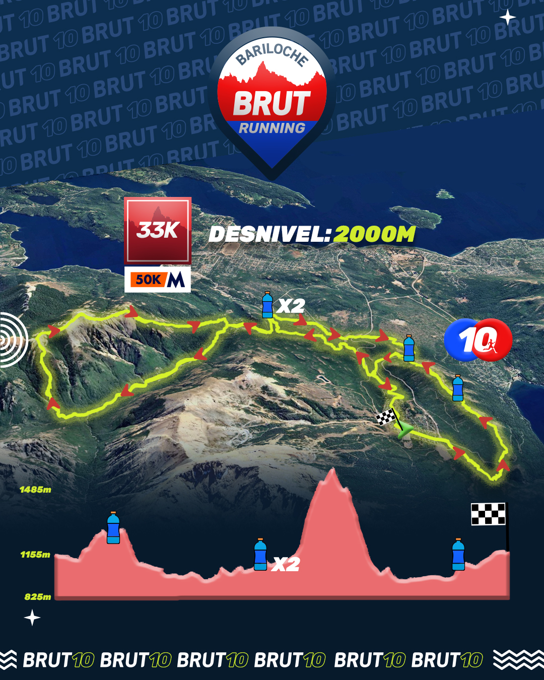 La alimentación durante la carrera comienza a ser muy importante y el equipamiento técnico y el buen uso del mismo son fundamentales. Los 33k saldrán desde la base del cerro Catedral hacia en Cerro San Martin, realizarán un ascenso por una de las caras y un descenso por otra de sus caras. Al final de esta bajada se encontrarán con el primer puesto de hidratación. Seguirán por sendas hasta el Arroyo Casa de Piedra donde estará el segundo puesto de hidratación en el km11. De aquí comienza un gran ascenso hacia la cumbre del Cerro Bellavista. Luego de una bajada técnica y rápida llegarán nuevamente al Puesto de hidratación Arroyo Casa de Piedra en el km 25. En este punto tendremos el horario de corte a las 3:00 PM  Luego retomarán subiendo el Cerro San Martin por otra de sus caras hasta encontrar el cuarto y último puesto de hidratación en el km 28. Un descenso final a la base del Cerro Catedral por zetas muy rápidas y divertidas y la llegada!